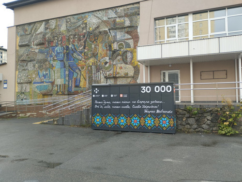 Ювілейний поштомат Нової пошти з’явився у столиці — на Дарницькому бульварі, 23. Він прикрашений українським орнаментом і цитатою Тараса Шевченка.