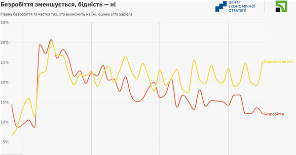 Така ж відсоткова кількість українців змушена економити на їжі ... Рівень безробіття в Україні знизився до 12% — найменший показник з початку повномасштабної війни. Люди стали активніше шукати роботу, ніж у 2024 році.