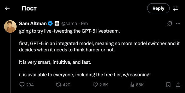 ▪️Модель доступна сегодня для Free, Plus, Pro и Team; на следующей неделе — для Enterprise и Education.