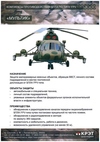 РФ презентувала компактний комплекс радіоелектронної боротьби «Мультик» для прикриття гелікоптерів і наземних підрозділів від FPV-дронів.