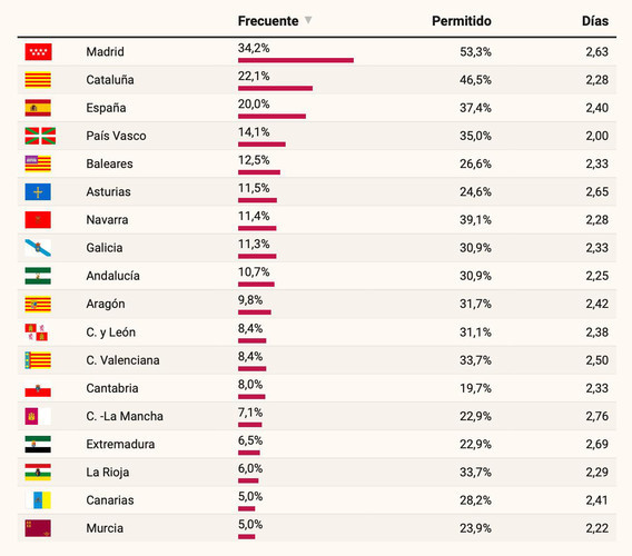 По данным Национального института статистики (INE), 20% сотрудников постоянно или часто работают удалённо, при этом 37,4% испанских компаний (со штатом от 10 человек) предоставляют такую возможность.