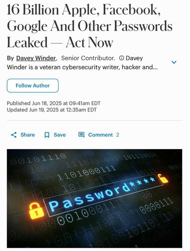 У Forbes вийшла стаття, в якій підтверджується витік 184 162 718 паролів та логінів, що стосуються користувачів Gmail, Apple, Facebook та Instagram. Та цей витік стався ще на початку цього року й нового не було.