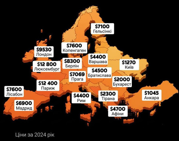 У 2025 році ціна квадратного метра нового житла в Києві становить приблизно $1300 — це у 5–10 разів менше, ніж у більшості європейських столиць.
