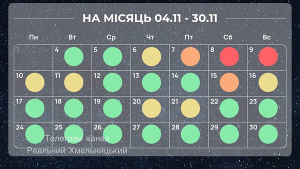 7,15 листопада передбачаються спалахи середньої сили (на 4 бали);