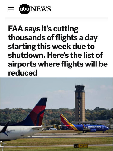 Обмеження торкнуться 40 найбільших аеропортів країни. Щодня скасовуватимуться тисячі рейсів — від 4% у п’ятницю до 10% у найближчі дні. Це стосується рейсів з 6:00 до 22:00.