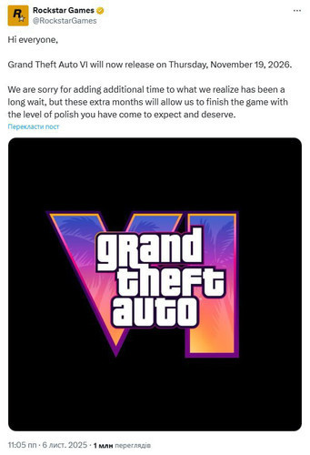 GTA VI выйдет 26 мая 2026 года, — Rockstar