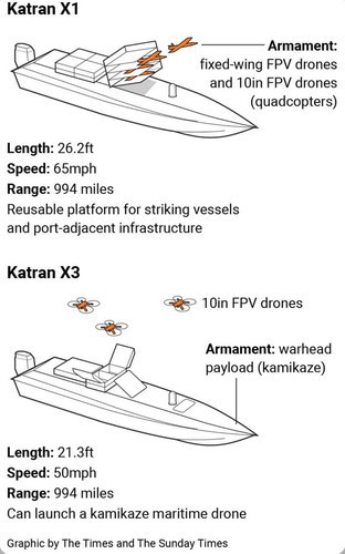 Кроме того, под каждым Катраном были подводные дроны-камикадзе, а фактически - торпеды с 80-килограммовой боевой частью.