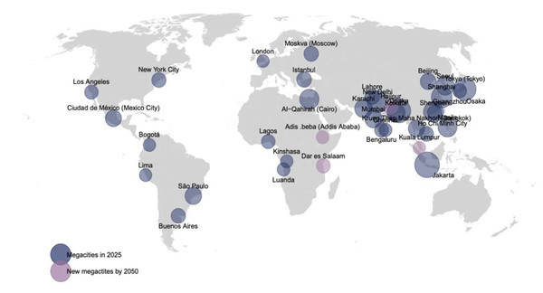 Кількість мегаполісів із населенням понад 10 млн за останні десятиліття різко зросла: