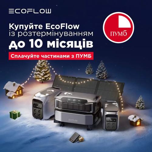 Купуйте рішення EcoFlow та сплачуйте частинами до 10 місяців з ПУМБ. Найкраще вкладення напередодні різдвяно-новорічних свят.