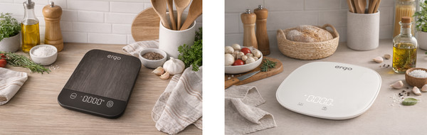 В асортименті ТМ ERGO з’явилися дві моделі кухонних ваг, які допомагають вимірювати сипучі, рідкі та тверді продукти й готувати смачні страви завдяки точному дотриманню рецептури.