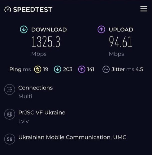 Згідно зі статистикою мережі, абоненти отримували швидкості понад 1300 Мб/с, а максимальна зафіксована швидкість на базовій станції в реальних умовах під навантаженням склала 1451 Мб/с.