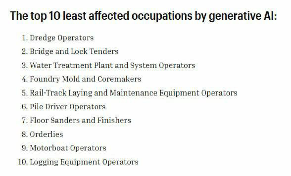 Также компания показала специальности, которым нейросети пока не угрожают.