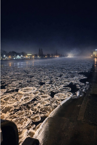 На поверхні води помітили незвичайні крижані диски. Таке явище виникає за специфічних умов: температура близько 0°C, слабкий вітер та повільна течія.