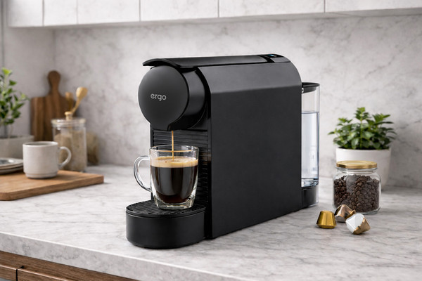 Новинка ERGO CCM-2509 поєднує в собі всі переваги сучасної капсульної кавоварки. Виконання в стильному матовому пластику чорного кольору робить цю модель справжньою прикрасою інтер’єру, а її вертикально орієнтований корпус є максимально вузьким, що допомагає заощадити дуже багато місця на кухні. Відсутність необхідності змелювати й дозувати каву максимально пришвидшує процес приготування, дозволяючи насолоджуватися запашним напоєм за лічені секунди після запуску програми.