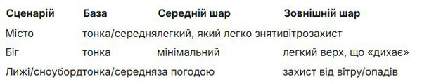 Ідея: правильний базовий шар — це «тепловий менеджмент», а не просто «тепліше вдягнутися».