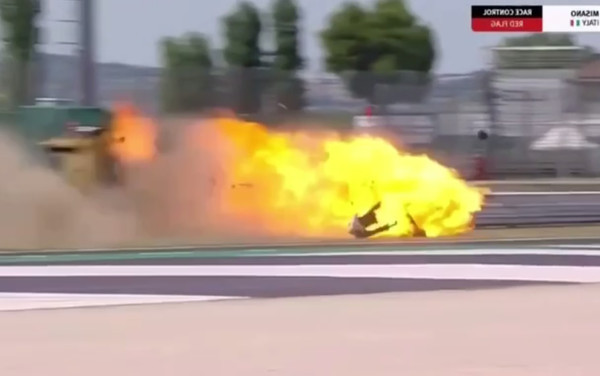 Після контакту з іншим автомобілем машина врізалася в огорожу, а через пошкоджений паливний бак спалахнула. Сам пілот, на щастя, не постраждав.