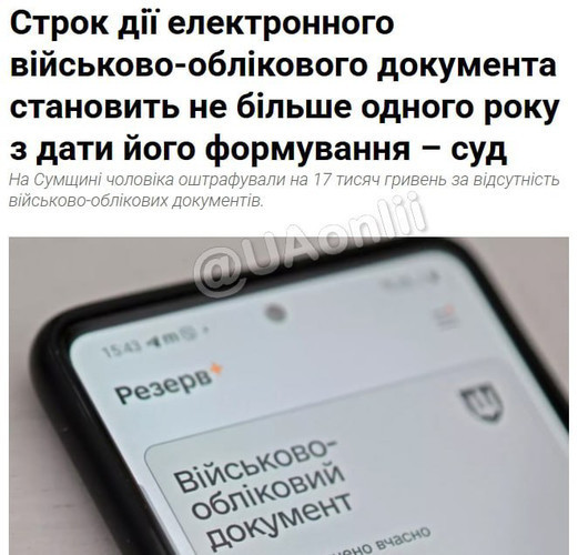 На Сумщині чоловік був оштрафований на 17 тисяч гривень через відсутність військово-облікових документів.