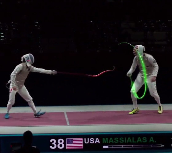 Штучний інтелект у режимі реального часу "додає" різнокольорові смуги за кінцем шпаги. Тепер поєдинок виглядає як битва чарівників.