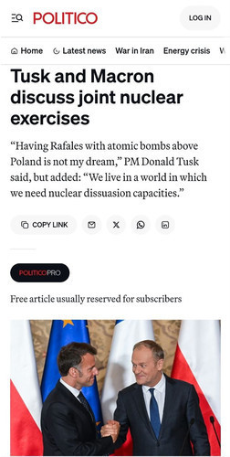 Водночас прем’єр Польщі Дональд Туск наголосив, що розміщення літаків із ядерною зброєю над країною «не є його мрією», але визнав необхідність таких інструментів у сучасному світі.