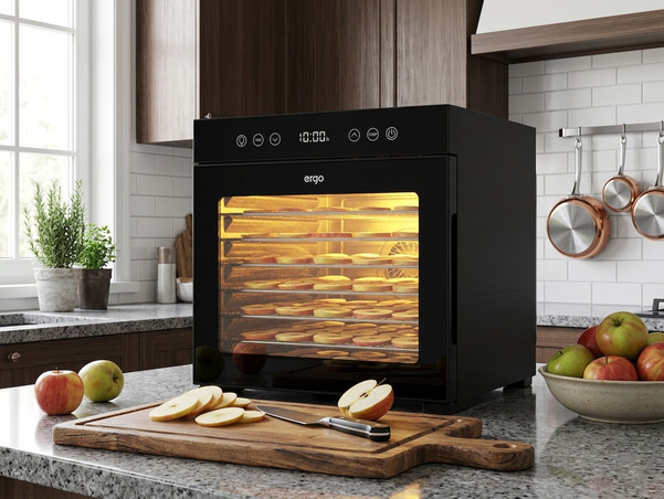 Керування всіма функціями й можливостями сушарки відбувається за допомогою зручної сенсорної панелі, яка дозволяє вмикати підсвічування внутрішнього простору сушарки, налаштовувати час і температуру, контролюючи всі параметри на світлодіодному дисплеї. Завдяки максимальній потужності 650 Вт модель ERGO FD-1008 ефективно сушить продукти і споживає мінімум електроенергії. Можливість регулювання температури в діапазоні від 35 до 75 градусів з кроком в 5 ° С дає змогу ретельно підбирати температурні режими для будь-яких типів продуктів.