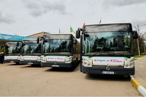 Бучанська громада отримала від Франції чотири сучасні автобуси: три для роботи на маршрутах і один "автобус незламності".