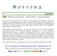 FotoGid.com ищет по русскоязычным сайтам, которые публикуют обзоры, тесты и подробные описания различной фототехники, характеристики фотоаппаратов, уроки по фотоделу, статьи по обработке и редактированию цифровых фотографий. В область для поиска так же включены форумы и блоги с отзывами и обсуждениями фототехники ее пользователями.