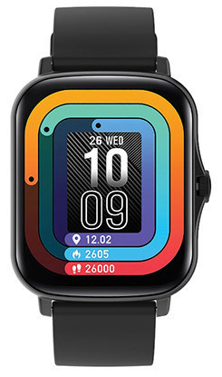 Здесь имеем уже более привычный для современных smart-часов прямоугольный корпус. Соответственно, диагональ дисплея увеличена до 1,4 дюйма. Девайс включает процессор HS6620D и чувствительный экран типа TFT с чётким контрастным изображением. Корпус чёрный, металлопластиковый.