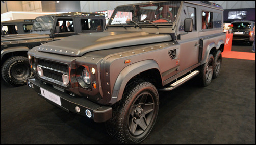 В Женеве ателье Kahn Design представило шестиколесный Land Rover Defender. От отригинальной версии "трехосник" отличается, с точки зрения начинки, модернизированной подвеской и мн. др.