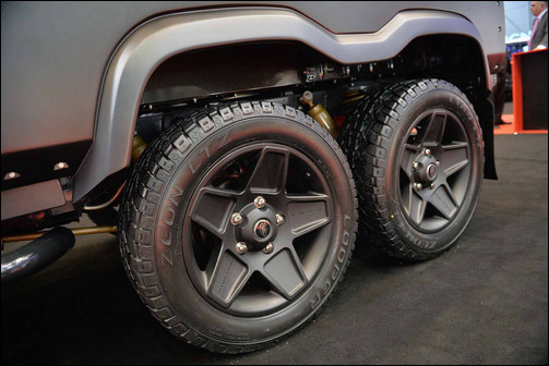 В Женеве ателье Kahn Design представило шестиколесный Land Rover Defender. От отригинальной версии "трехосник" отличается, с точки зрения начинки, модернизированной подвеской и мн. др.