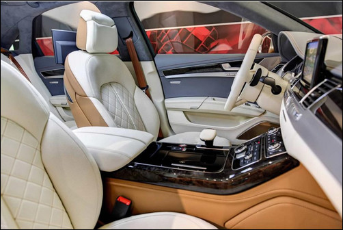 Audi S8 получила обновление через программу индивидуализации. Автомобиль окрашен в новый цвет – 3 100 евро (Ipanema Brown Metallic), получил 21-дюймовые легкосплавные диски (2 000 евро) и пр.