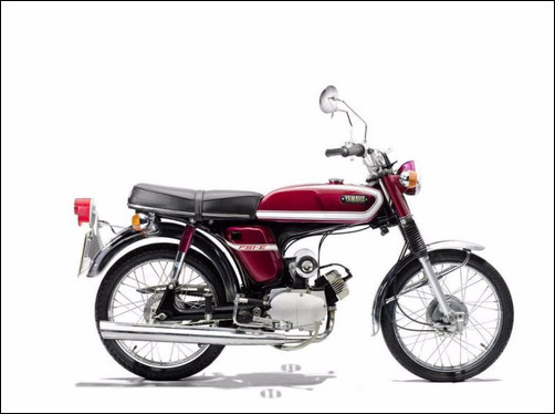 Yamaha FS1-E "Fizzie" 1974 г.в. В 1970-80 гг в Англии он обладал культовым статусом, потому что это был самый быстрый 49-кубовый двухколесник и им можно было управлять уже с 16 лет.