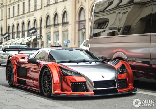 Gumpert Apollo S. Это 1200 кг чистого веса, 2,9 секунды до сотни и 362 км/ч максималки. Этот шедевр быз запечатлен "на пленку" на днях в Мюнхене.