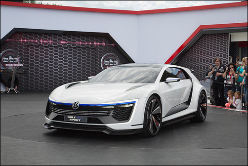 Volkswagen привезла на фестиваль тюнинга Вертерзее очередной концепт "горячего" Golf'а - GTE Sport, главной особенностью которого является гибридная 400-сильная силовая установка.