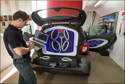 Крошечный автомобиль Smart ForTwo оборудовали акустической системой на 5720 Вт