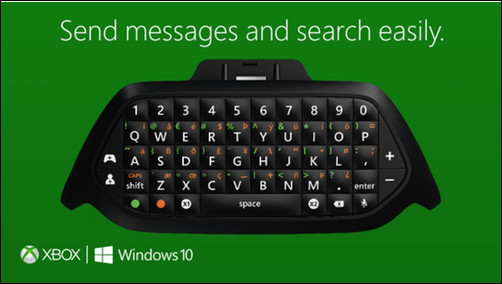 В рамках выставки Gamescom 2015 Microsoft представила Xbox One Chatpad — компактную клавиатуру с раскладкой QWERTY, вставляемую непосредственно в контроллер консоли.