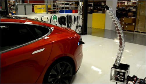 Tesla Motors продемонстрировала в действии необычную систему автоматического подключения проводного зарядного устройства к электрическим автомобилям.