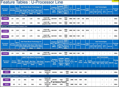 Известны характеристики процессоров Intel Skylake-U