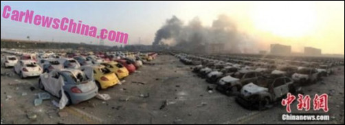 В китайском портовом городе центрального подчинения Тяньцзине произошел сильнейший взрыв- огонь уничтожил свыше 1000 новых машин, в числе которых модели Volkswagen, Renault и Land Rover.