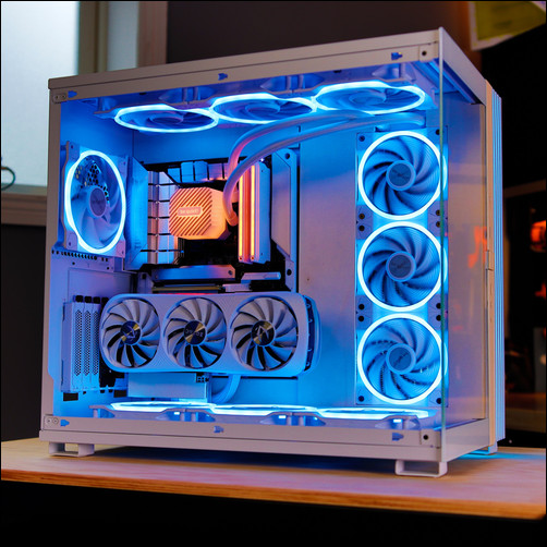 Сетап від команди @metallicacidcustoms на базі Light Base 900 FX, СРО Light Loop та вентиляторів Light Wings дуже влучно поєднує чисту білу основу з холодними блакитними тонами та ніжним помаранчевим.