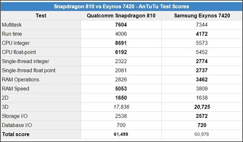 Exynos 7420 незначительно уступил Snapdragon 810 в тесте AnTuTu