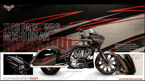 Victory Magnum X-1 будет отличаться кастомной покраской и громкой аудисистемой с большим количеством динамиков -в 4 раза мощнее системы Cross Country и в 2 раза мощнее системы на базовой моделе Magnum
