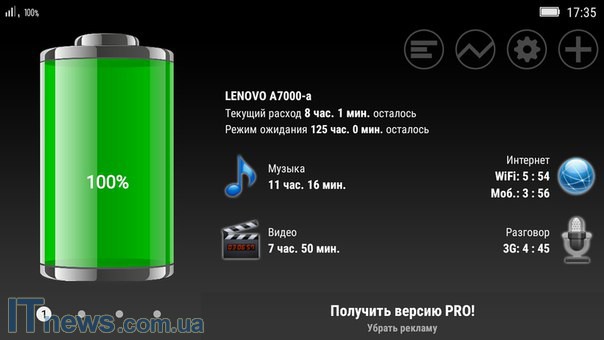 Ниже результаты тестирования автономности посредством утилиты "Батарея HD".