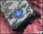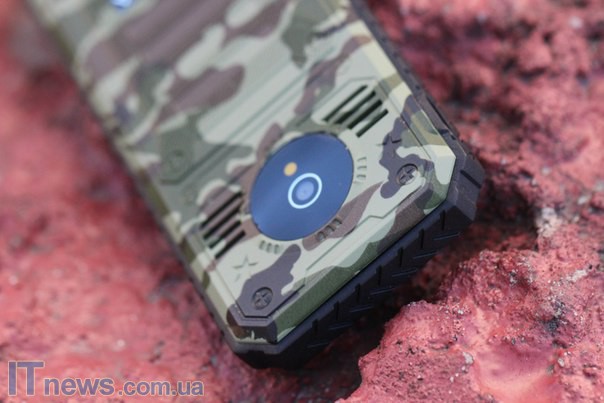 В теле тыльной части корпуса, полностью прикрываемой крышкой аккумуляторного блока, предусмотрена сетка динамика громкой связи и вывод глазка встроенной камеры.