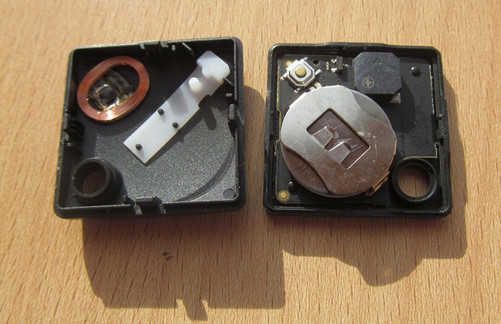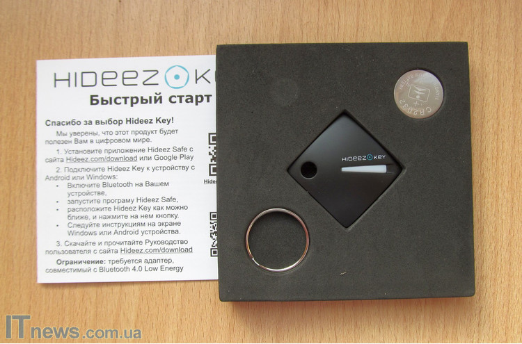 Кольцо служит для крепления гаджета к связке ключей. Батарейка на 3 В предназначена для замены, поскольку такая же уже вставлена в гаджет.