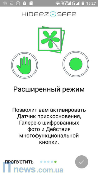 Здесь можно задать включение диктофона, запись видео, исходящий звонок или SMS, включение фонарика или фотосъемку, в частности селфи. Фото сохраняются в скрытую галерею, доступ к которой можно получить только из Hideez Safe. Есть здесь и своя камера для секретных снимков.
