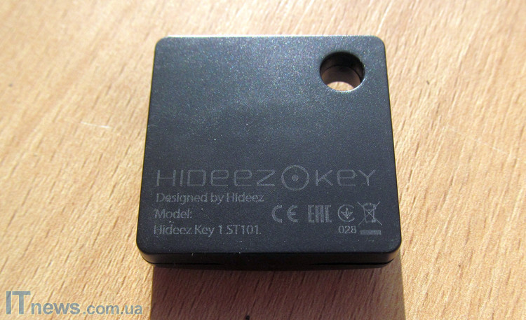 Hideez Key имеет очень простую конструкцию. Корпус из черного матового прорезиненного пластика, на котором остаётся минимум отпечатков пальцев. Здесь имеется круглое отверстие для крепления кольца и ключей и многофункциональная кнопка, снабжённая двумя светодиодными индикаторами зеленого и красного цветов.