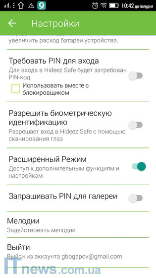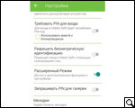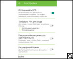 Здесь можно включить или отключить GPS, задать PIN для входа, добавить биометрическую идентификацию по сканированию глаз (!) и перейти в расширенный режим.