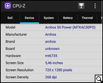 Archos 50 Power укомплектован 5-дюймовым дисплеем, в основе которого добротная матрица, способная на практике на весьма неплохие углы обзора, как по вертикали, так и горизонтали. Приятно, что даже при максимальных углах наклона цветопередача фактически не изменяется.