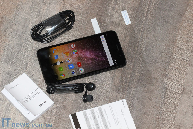 Комплектация смартфона дополнена адаптером зарядного устройства, кабелем USB/micro-USB, проводной гарнитурой достаточно высокого качества, а также необходимой документацией, скрепкой доступа к лотку SIM-карт и защитной пленкой на дисплей. За последнее производителю стоит сказать отдельное спасибо, поскольку бренд Archos для нашего рынка достаточно новый, и подобрать аксессуар такого плана крайне непросто. Словом, приятно, что производитель учел этот, с позволения говоря, "момент".