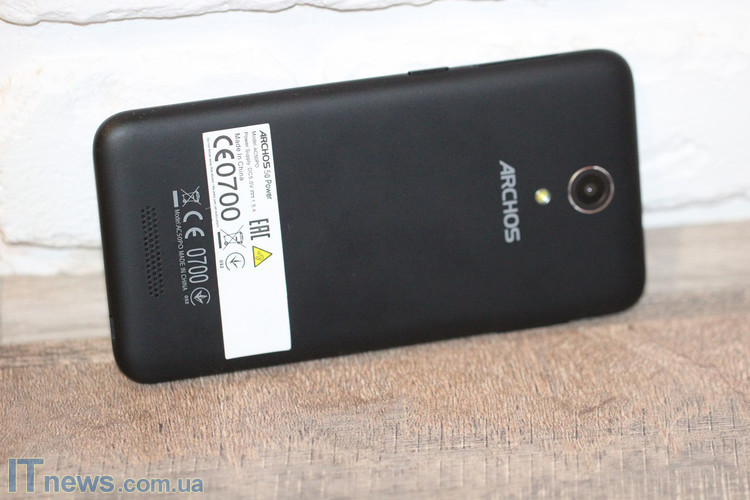 Archos 50 Power обладает двумя отдельными динамиками – разговорным, обустроенным классически, над дисплеем, а также громкой связи. Последний выведен на тыльной панели в виде мелкой сетки.